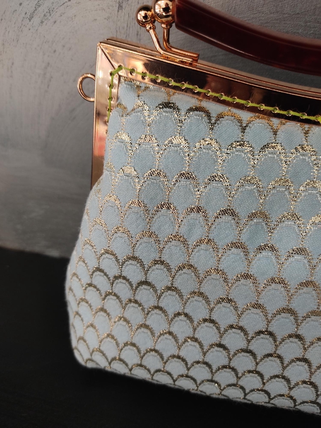 Borsa realizzata a mano con tessuti selezionati con estrema cura originale anni '50, tracolla removibile in metallo interno in raso elegante con comodo taschino.