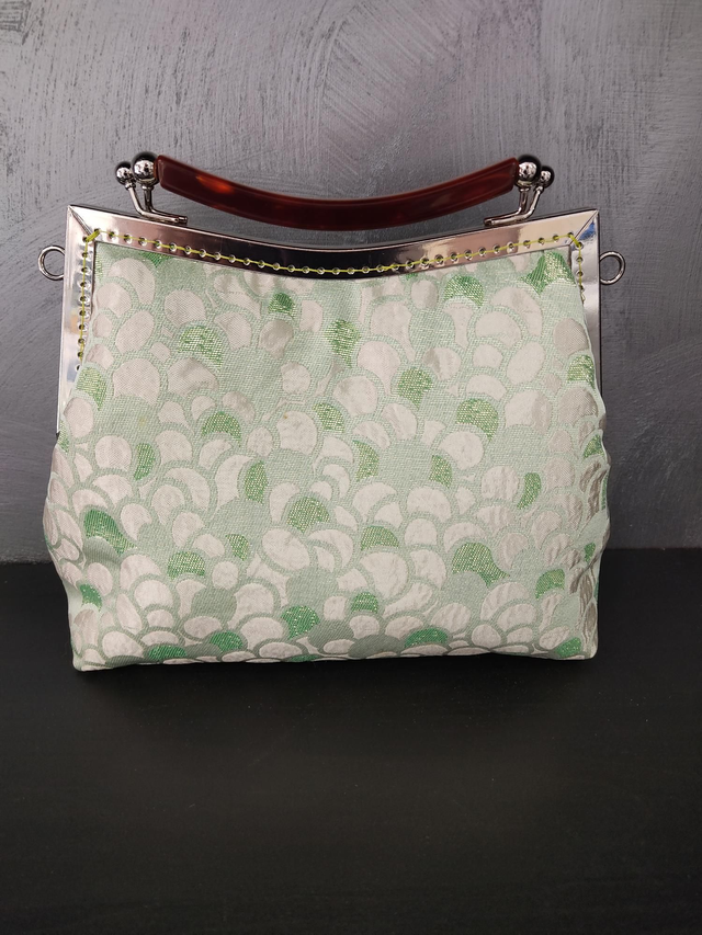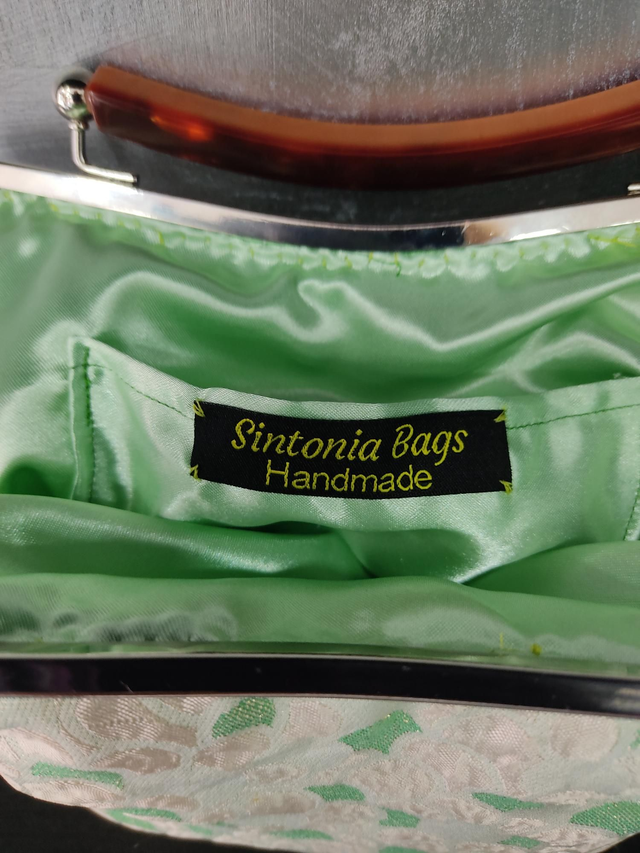 Borsa realizzata a mano con tessuto originale anni '50 selezionato con estrema cura, tracolla removibile in metallo interno in raso elegante con comodo taschino.