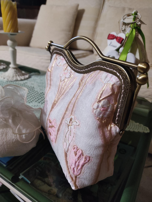 Borsa realizzata a mano con tessuti ricercati e selezionati con cura.