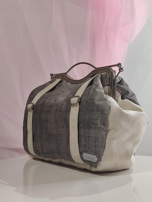 Materiale Esterno: Velluto grigio impreziosito da dettagli in crema che creano un contrasto delicato.